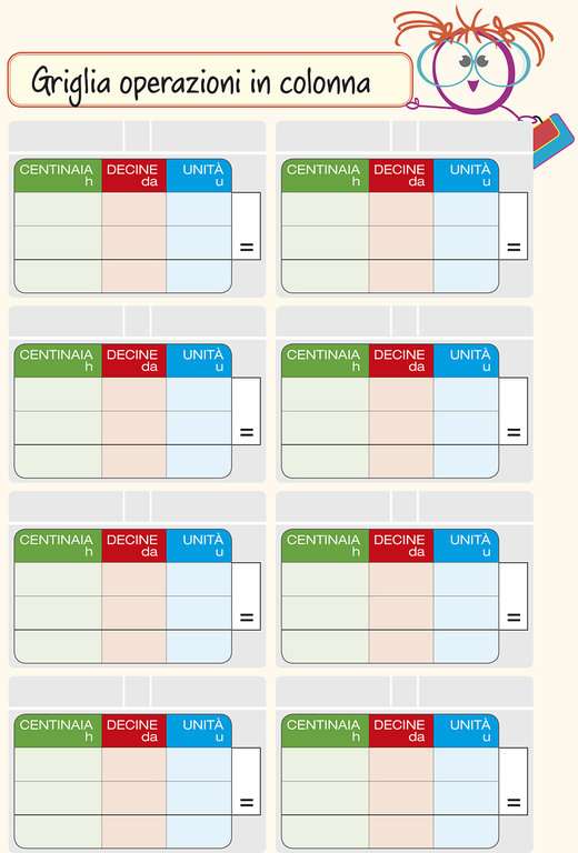 Le griglie pronte consentono al bambino con problematiche visuo-spaziali di migliorare le prestazioni esecutive anche in termini temporali. Questo set contiene le griglie per incolonnare fino alle centinaia.