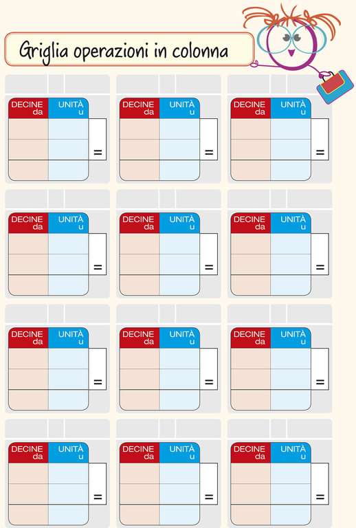 Le griglie pronte consentono al bambino con problematiche visuo-spaziali di migliorare le prestazioni esecutive anche in termini temporali. Questo set contiene le griglie per incolonnare fino alle decine.
