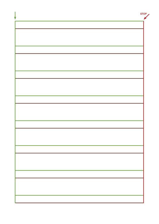 I quaderni presentano righe colorate verdi e marroni ben definite cromaticamente e ben distanziate tali da fornire un buon orientamento visuo-percettivo all' alunno in difficoltà e/o nelle prime fasi dell' apprendimento della scrittura in stampatello.